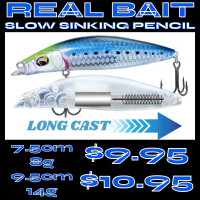 To attract the fish these lures have a curved shape for a natural swimming action, a highly reflective holographic finish and striking colours, plus there is a small spoon blade attached to the tail for light reflection in multiple directions while creating water commotion and bubbles!