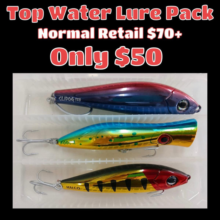 Home > ONLINE STORE > LURES > LURE PACKS UNBEATABLE VALUE > Halco Top Water Lure Pack - 3 x lures + Tackle Box - Not $70m - Only $50