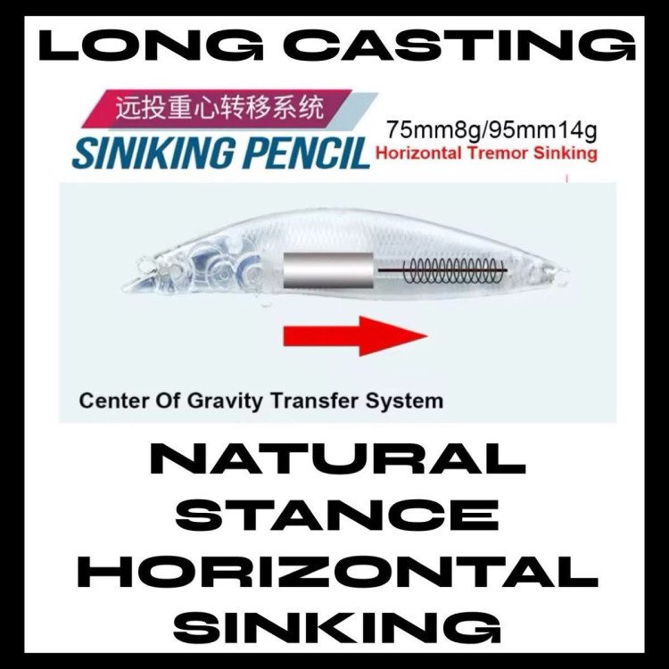 Featuring an internal weight transfer long cast system, these lures allow the angler to work a large area efficiently and effectively increasing the chance of the Real Bait lure getting the attention of any predator fish lurking near by resulting in strikes!