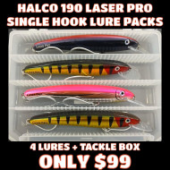 Halco Lures 190 Laser Pro Lures - Singles Tuna Pack - 4 x Single Hook 190 Laser Pro Lures + Tackle Box - Only $99.95