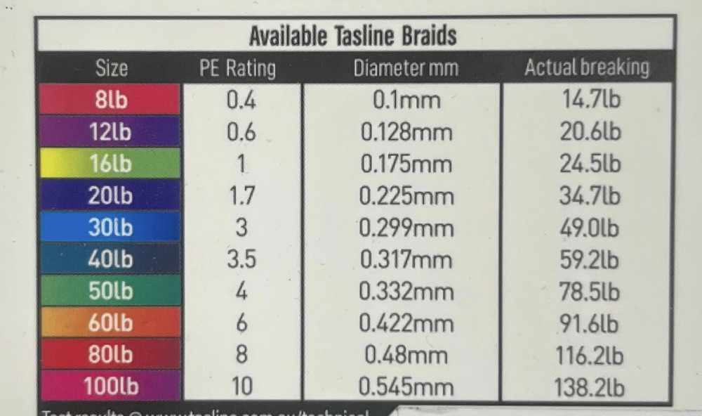 Tasline Elite is a high-end braided line Made in Australia, from the finest Spectra fibers available on the market from Honeywell USA. Tasline Elite is pure braid, with no coatings or additives, leaving it silky smooth and supple for improved casting distance and extreme fishing situations. Together with a proprietary process developed by Tasline, this braid is tweaked to optimum performance. Manufactured and tested in small batches, to make sure Tasline Elite White is the very best braid available. Independent tests show with Tasline Elite you will get the best of both worlds. Smaller diameters to get more line on your reel and higher breaking strains for those trophy fish.