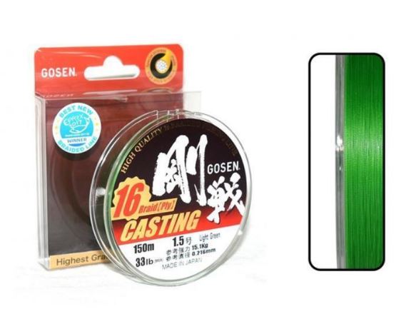 Japanese sixteen strand GOSEN Casting braid is a top quality product made in Japan.